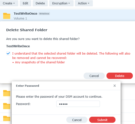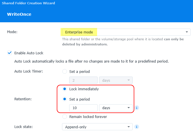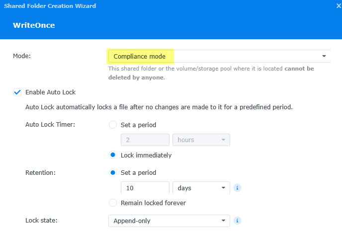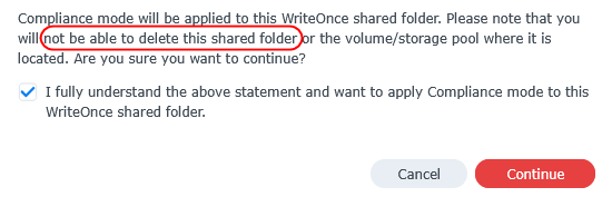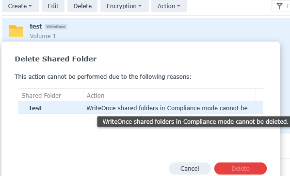 Because of this huge drawback, I suggest using less strict “Enterprise mode”. I hope Synology will fix this nonsense that makes Compliance mode impratical for no real benefit. It just drives users away to a less secure mode, while if they fixed this, Compliance mode would be a “go to” without a doubt.
