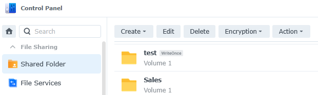 Once shared folder is created, it gets “WriteOnce” mark next to it: